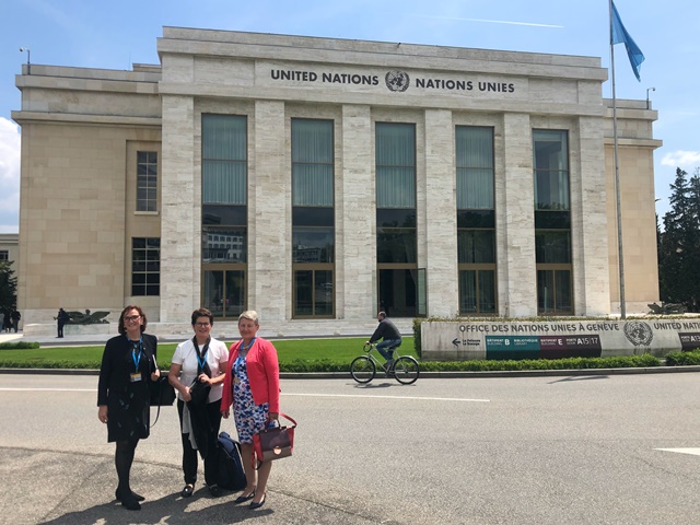 Outside the UN in 2019. As RACS Councillor, Chair of Global health, she attended the World Health Assembly for several years.