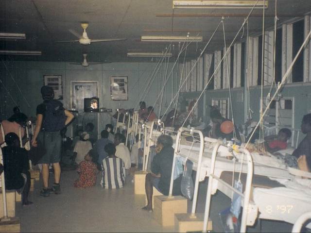 1998 - PNG tsunami response showing children with femoral shaft fractures in traction on the ward